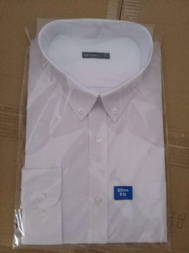 Etichette di marca originale da uomo formale a manica lunga con bottone per ufficio lavoro aziendale indumento in popeline antirughe tinto di bianco