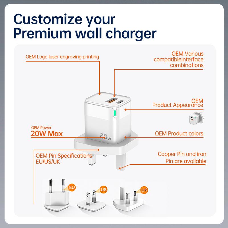 Originale Chargeur Factory EU UK US spina 3 pin adattatore 20W PD ricarica rapida tipo C Usb c caricabatterie per iPhone 16 15 14 13 12 Pro