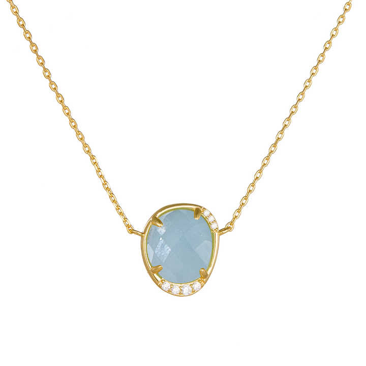 Original Design Natural Stone Amazonite Faced Necklace for Women Fine Necklace Sterling 925 Silver Jewelry Wholesale