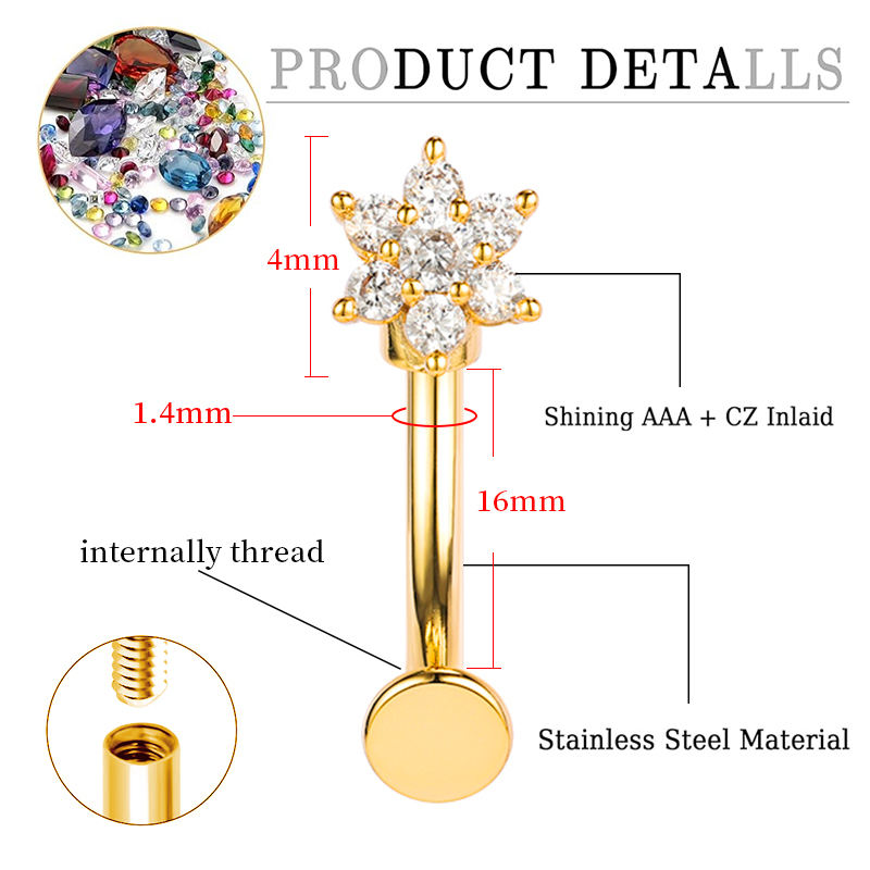 Lunghezza asta 16 mm: Fornisce un'aderenza comoda per la maggior parte dei piercing all'ombelico, garantendo facilità d'uso e comfort.