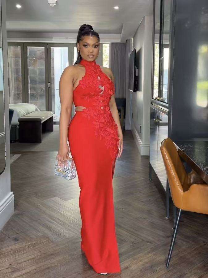 Abito da Sera Originale di Qualità C260118, Elegante Vestito da Donna con Spacco Alto per Feste, Abiti Lunghi SPEDIZIONE RAPIDA