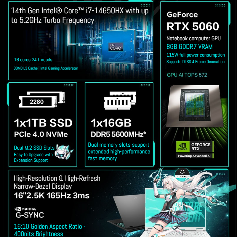 Notebook Gaming Originale per ASUS TUF F16 2025 Nuovo I7-14650HX 16-Core 16G 1T RTX5060 165Hz Spina US Inglese