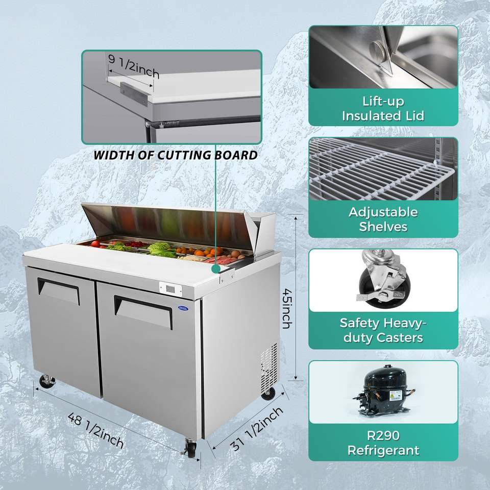 Orikool 48 Commercial Kitchen Refrigeration Equipment Sandwich Salad Prep Table Butcher Block Cutting Board Protection Lid Cold