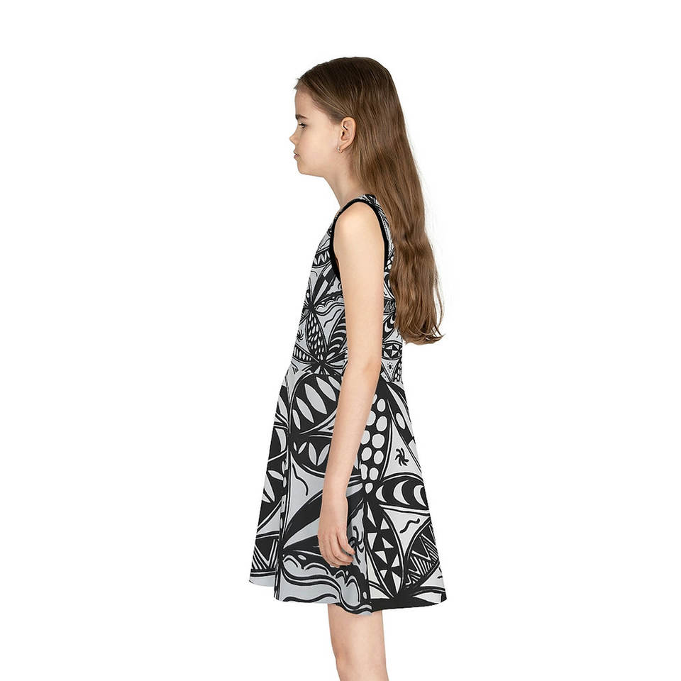 Orisun IV Girls' Sleeveless Sundress (AOP) Casual Party Sweet Style for 6-10 Year Olds Solid Pattern ODM Children's Dress