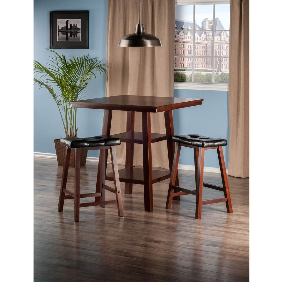 Orlando 3-Piece Dining Room Set High Table with 2 Shelves and 2 Cushioned Seat Stools