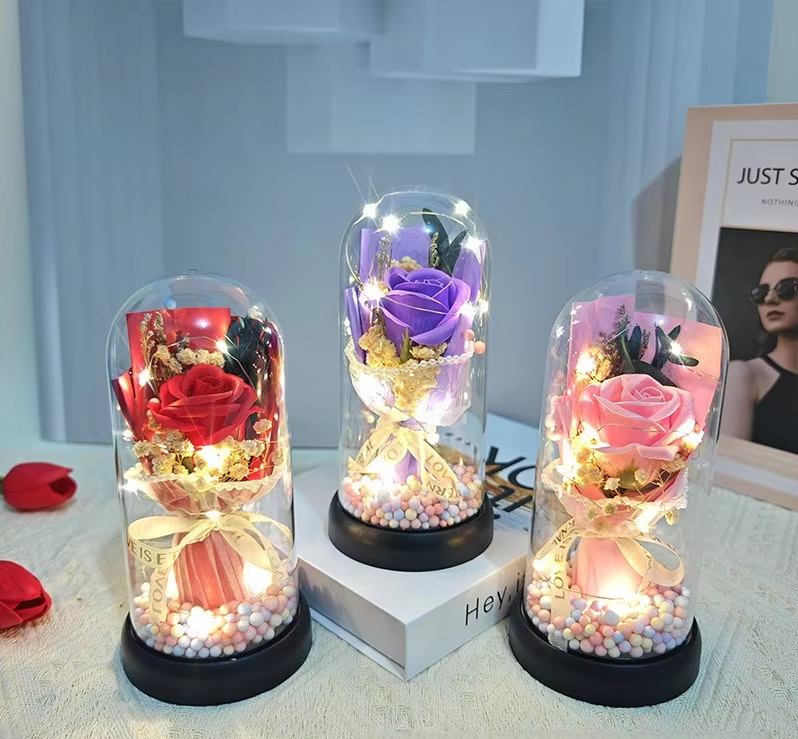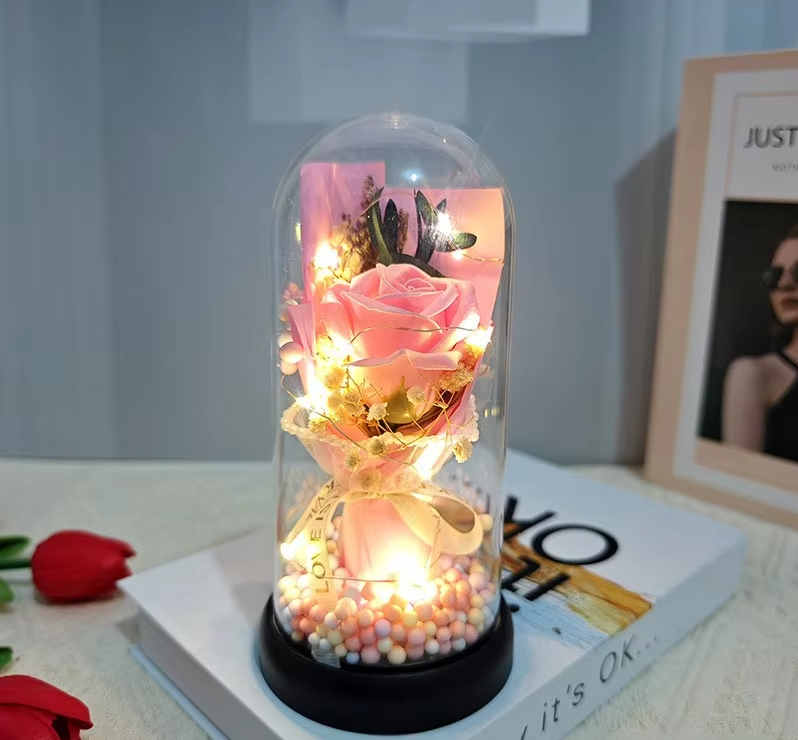 Ornament Girlfriend Glowing Rose Glass Cover Dried Soap Flower Bouquet for Mother's Day & Valentine's Day Preserved Plants Gift