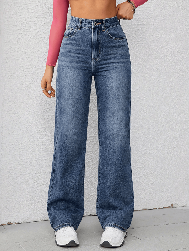 Oroie Malise Women's Breathable Simple High Waist Straight Leg Jeans Loose Fit Full Length Light Wash Denim Casual Summer