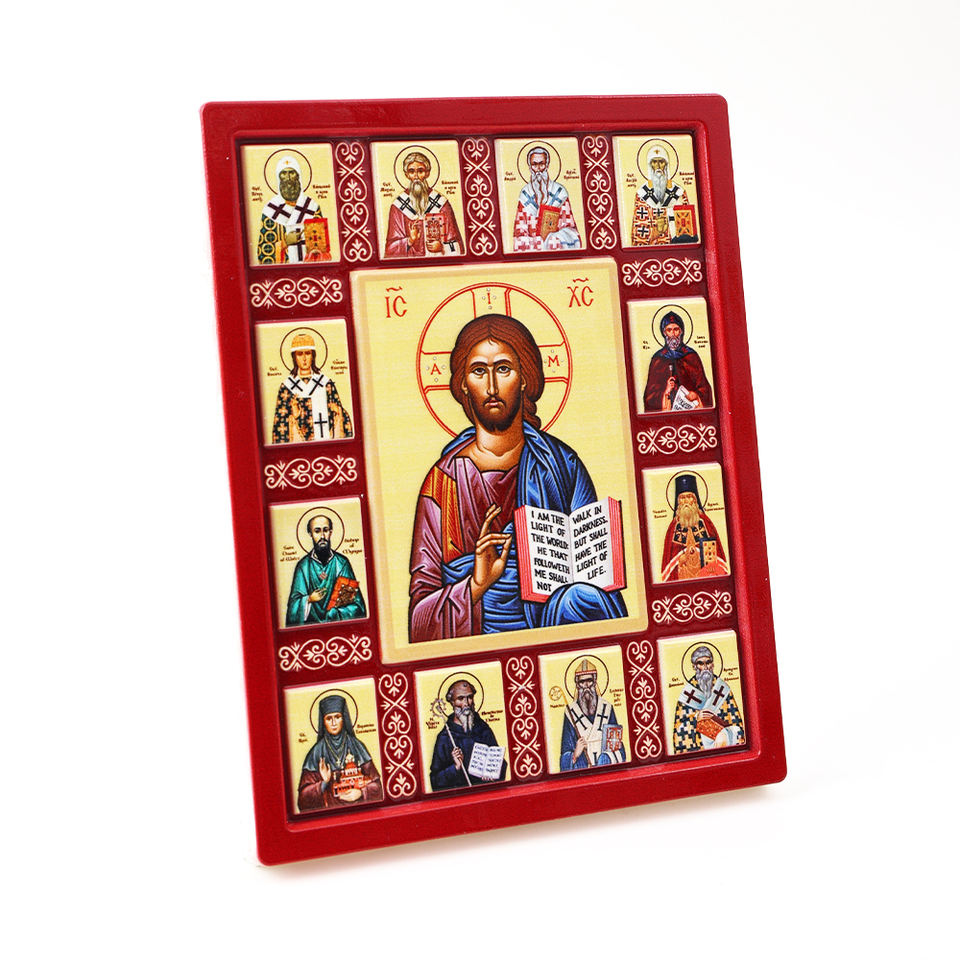 Icona Ortodossa di Gesù Decorazione Artistica in Resina 3D Squisita Manifattura con Santi Multipli Circostanti Sacro Solenne Oggetto Religioso