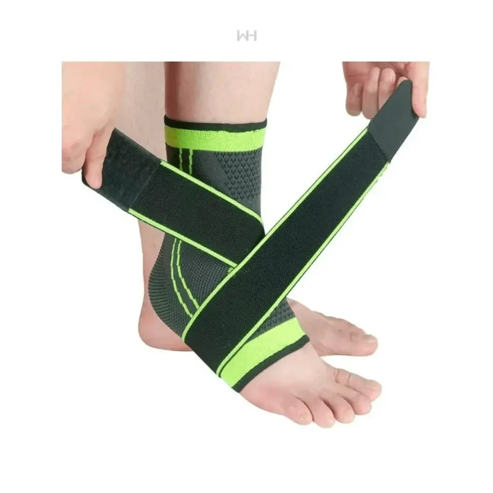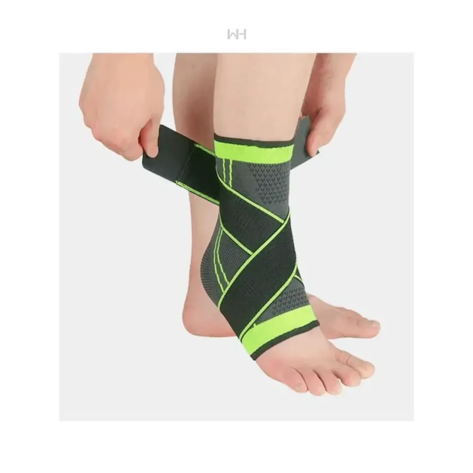 Tutore caviglia ortopedico a compressione regolabile, chiusura velcro, tessuto verde traspirante, per dolore/riabilitazione unisex