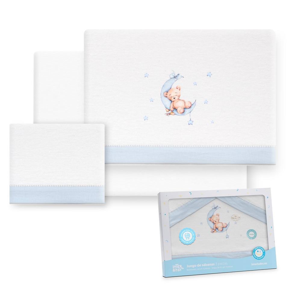 Set di Biancheria da Letto Oso-Luna 3 Pezzi per Passeggino in Flanella con Motivo a Personaggi