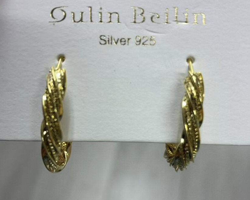 Oulin Beilin 925 Silver Hoop Earrings 22k Gold Plated Women's Everyday Wear French Style Twisted Design