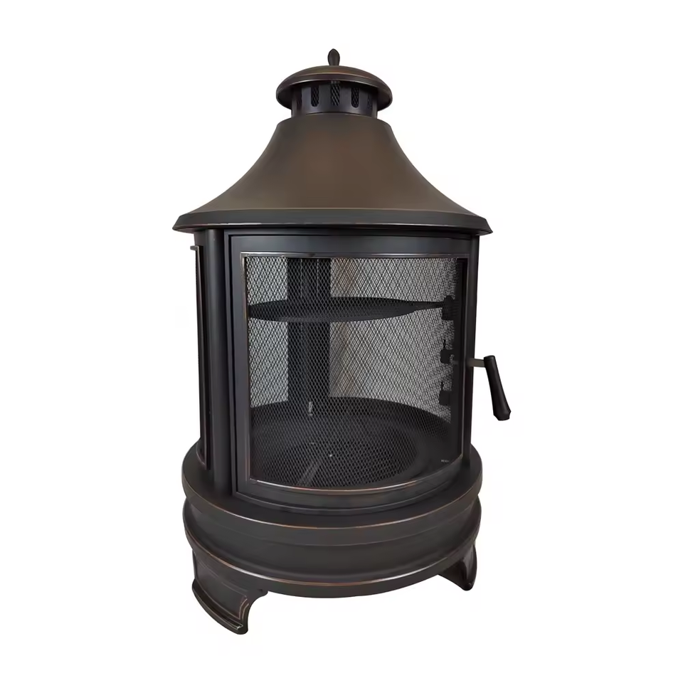 Outdoor 3 Legs Steel Round Fire Pit with Chimney Brazier Fireplace Patio Barbecue Grid Fire Pit