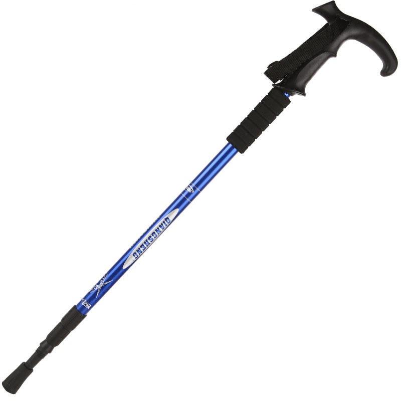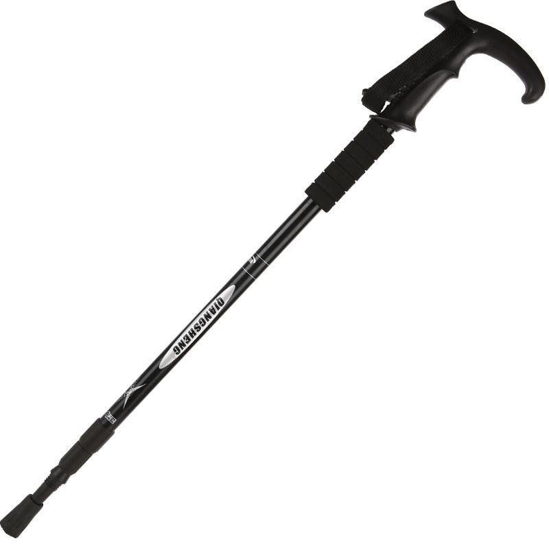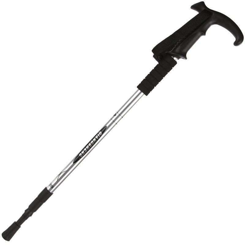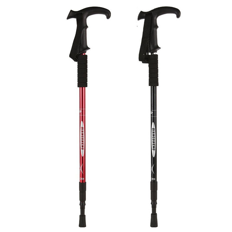Outdoor 3-Section Curved Grip T-handle Hiking Pole Aluminum Alloy Telescopic Walking Stick for Men Women Trekking and Travel