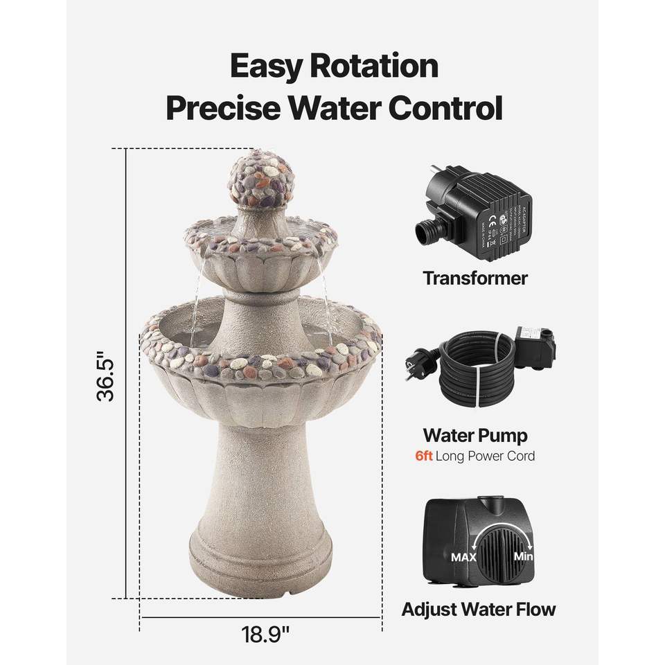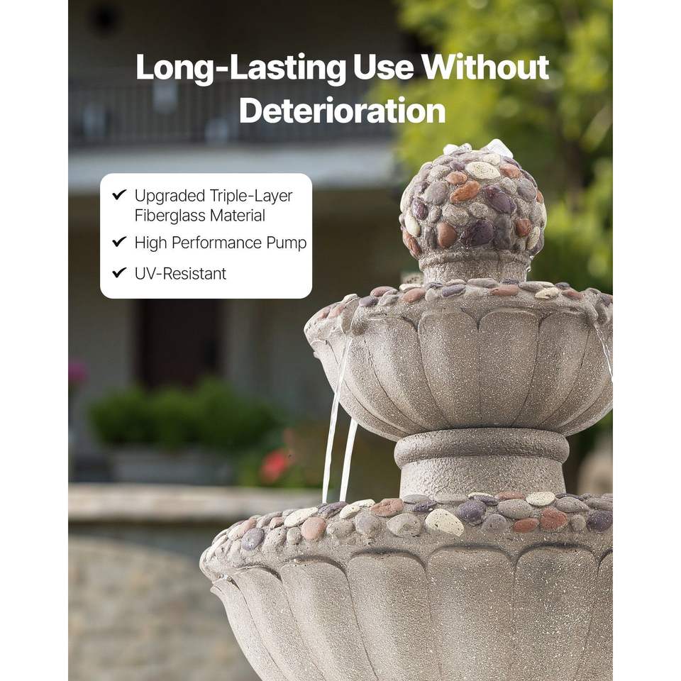 Fontana a cascata da esterno alta 36,5 cm, a 2 livelli, con base a roccia, in resina di fibra di vetro, elegante fontana in resina di fibra di vetro