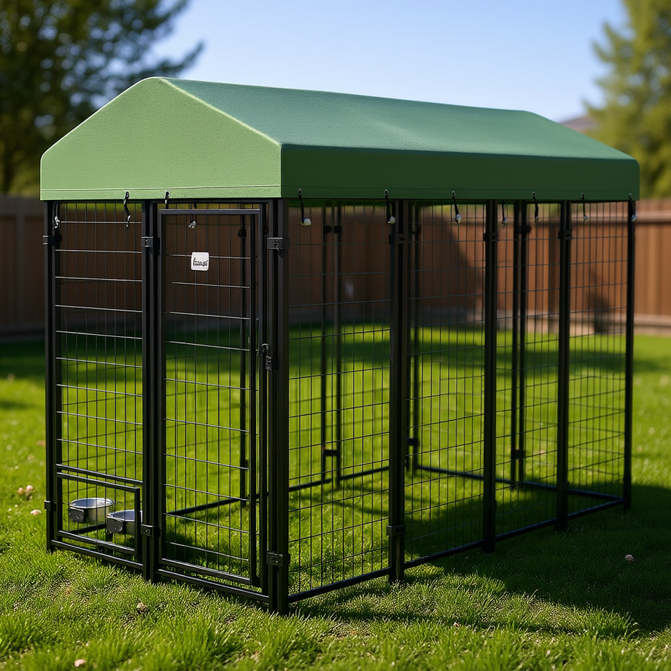 Recinto per Animali Domestici da Esterno 8' X 4' X 6' Verde, Cuccia per Cani con Telaio in Acciaio e Copertura Impermeabile per Razze Grandi, Tutte le Stagioni