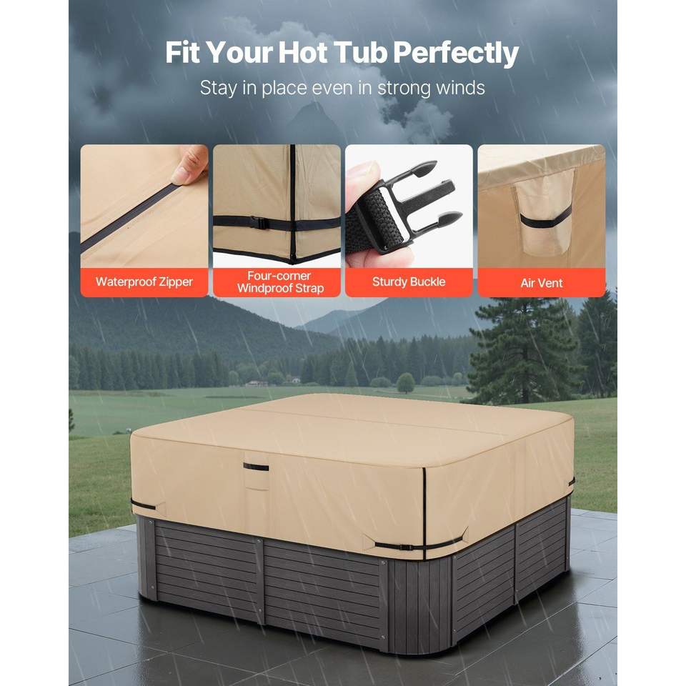 Copertura per Vasca Idromassaggio da Esterno 95 X 95 X 20 Pollici in Tessuto Oxford Resistente 600D Impermeabile e Resistente alle Intemperie, Coperture per Piscine