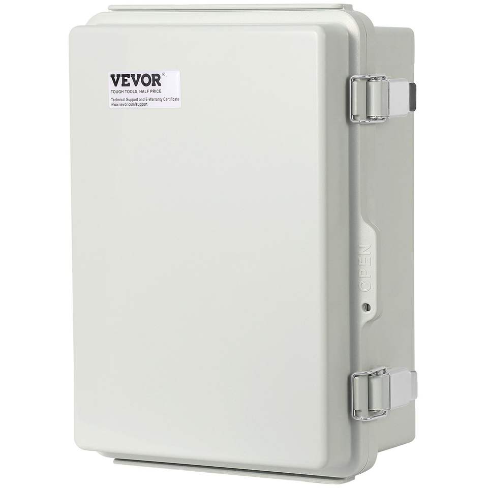 Scatola Elettrica Esterna in Plastica ABS 43 x 33 x 18 cm con Coperchio a Cerniera e Condotte e Raccordi in Acciaio Inossidabile
