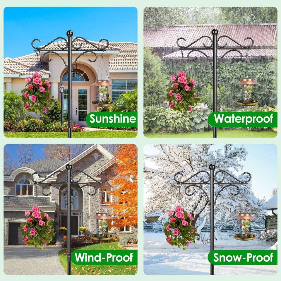 Supporto da Giardino in Metallo Regolabile in Altezza per Esterni con Base a 5 Punte e Doppi Ganci, Accessorio per Mangiatoie per Uccelli, Lanterne e Cesti Sospesi