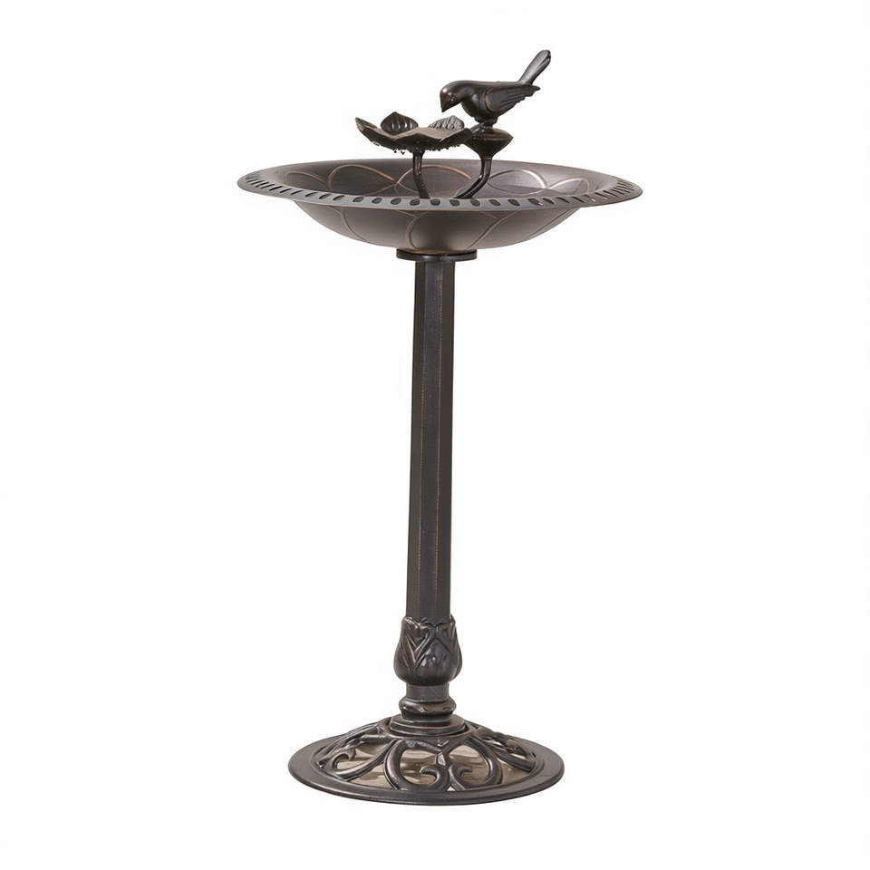 Outdoor Aluminum And Iron Bird Bath With Bird Perch Traditional Style For Backyard Wild Birds
