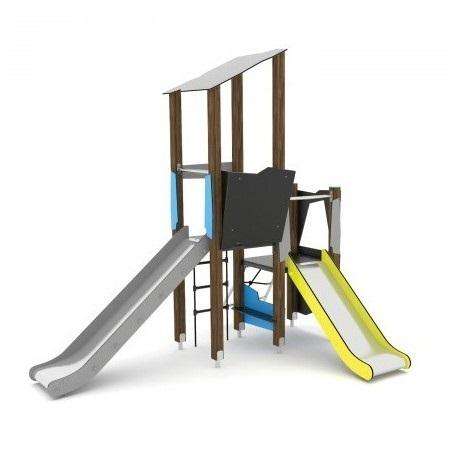 Outdoor Amusement Equipment Double Tower Playground with Climbing Slide at Different Heights