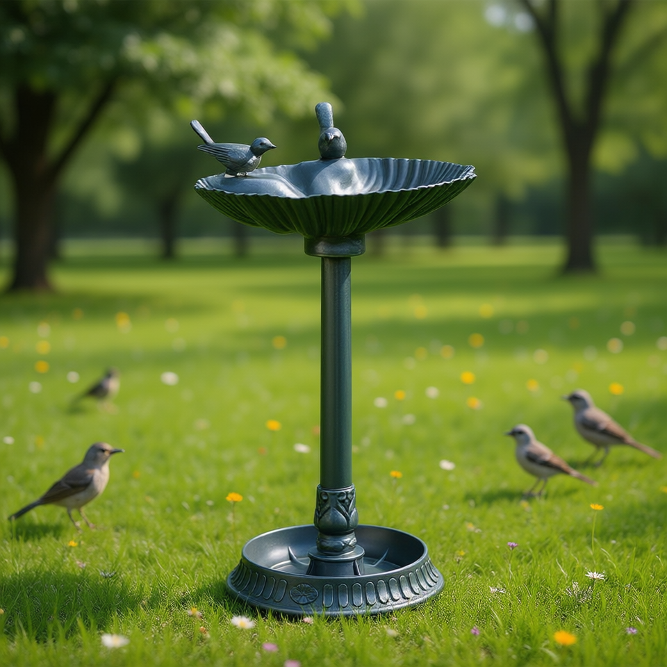 Mangiatoia per Uccelli da Esterno con Base Portafiori in Metallo, Stile Tradizionale Autoportante per Uccelli Selvatici
