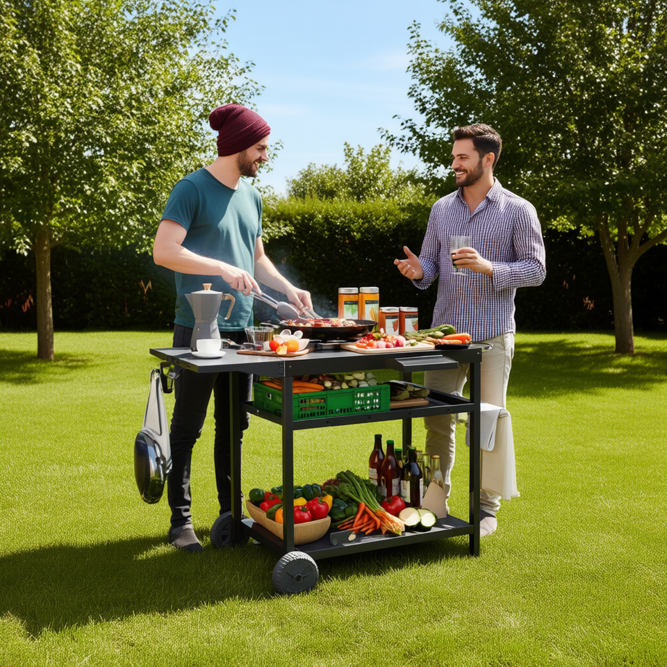Outdoor Bar Cart Grill Table D0100XTTM0G Metal Stocked For Outdoor Cooking
