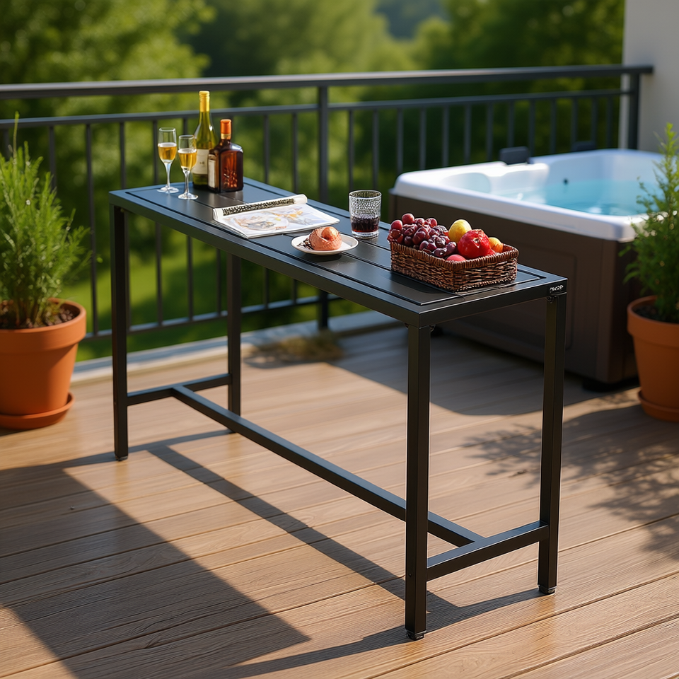 Tavolo da Bar da Esterno Rettangolare 63 Pollici con Struttura in Metallo Verniciato a Polvere, Altezza Bancone, per Balcone, Vasca Idromassaggio, Decorativo