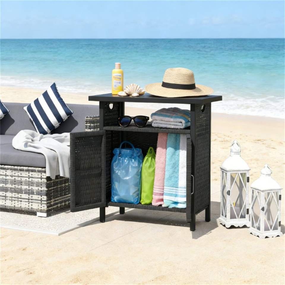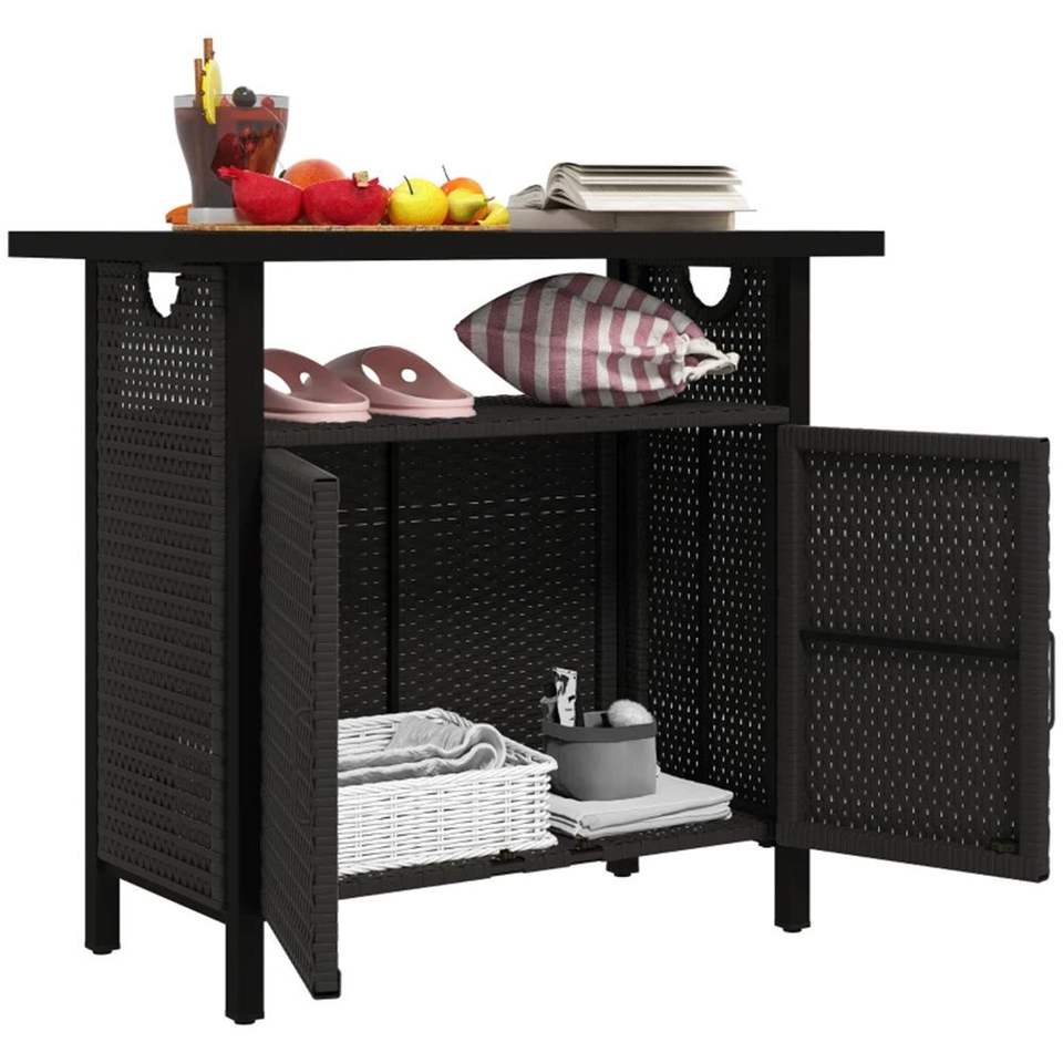 Tavolo da Bar da Esterno con Mobile Contenitore e Set Portasciugamani