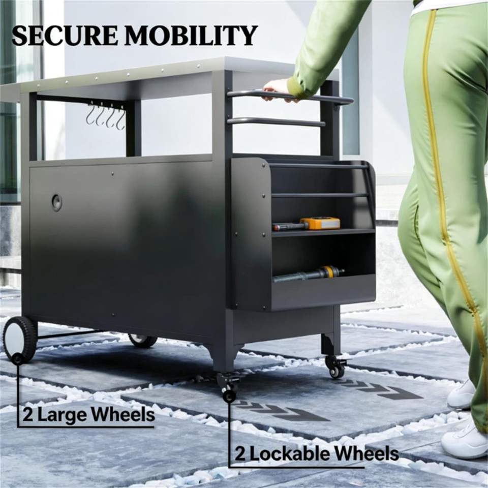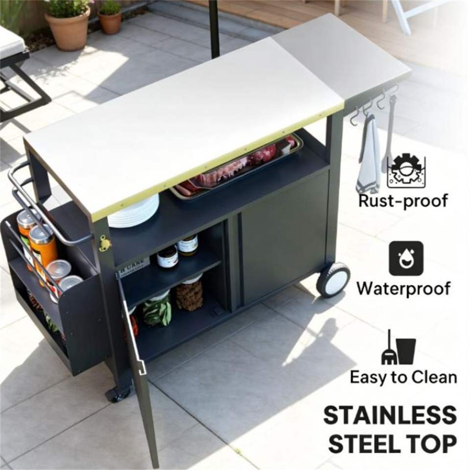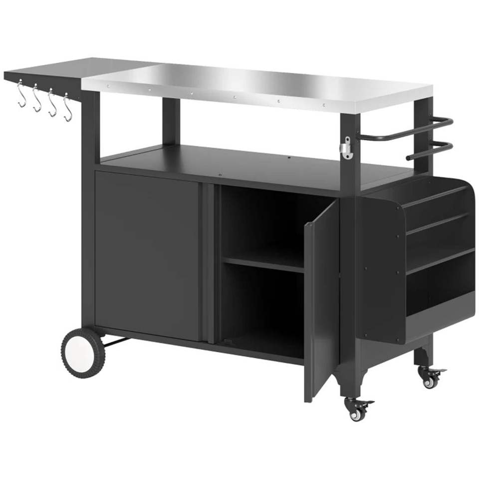 Carrello per Barbecue da Esterno con Griglia e Ripiano Portaoggetti, Accessori Essenziali per BBQ