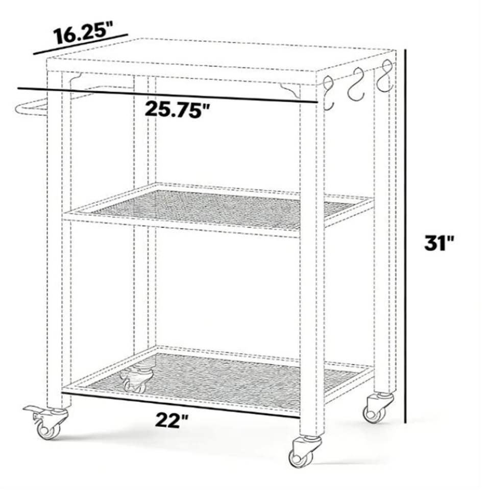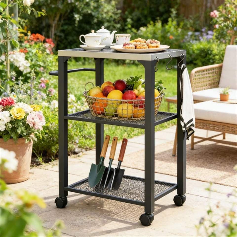 Carrello Portaoggetti per Barbecue da Esterno con Griglia e Rastrelliera per Uso Interno ed Esterno