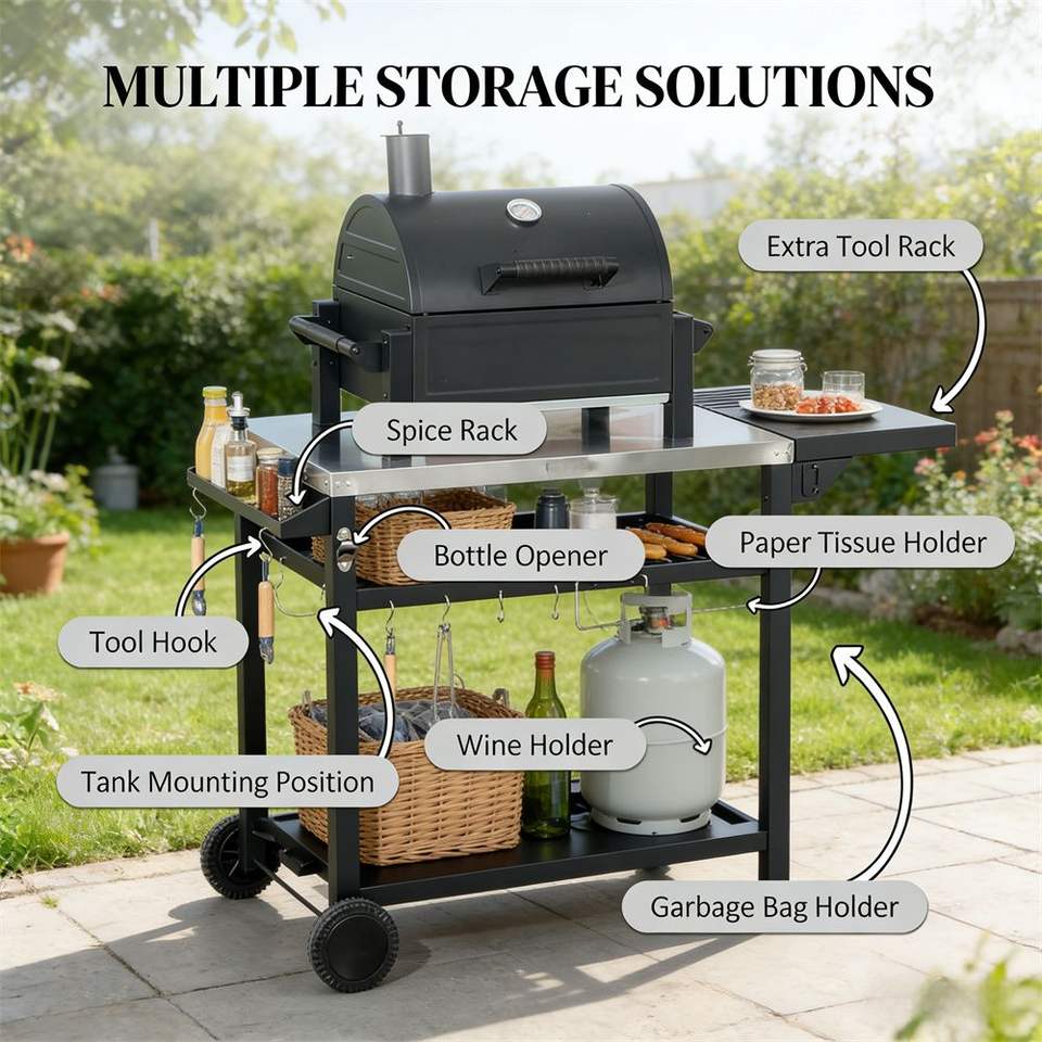 Tavolo e Carrello per Barbecue da Esterno per Campeggio