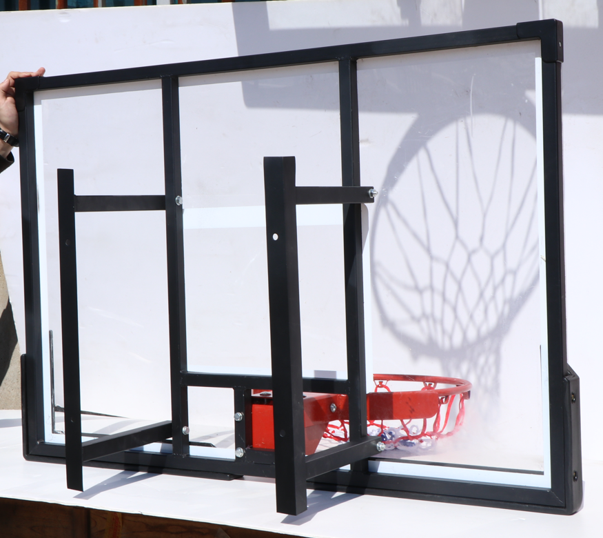 Canestro da Basket con Tabellone in Vetro per Esterni, Set Completo con Supporto a Parete per Interni ed Esterni