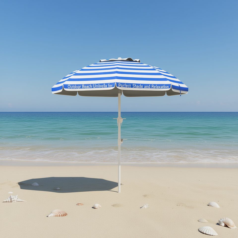 Outdoor Beach Umbrella 9 Ft Blue White Striped Sun Shade For Patio Pool Garden Relaxation