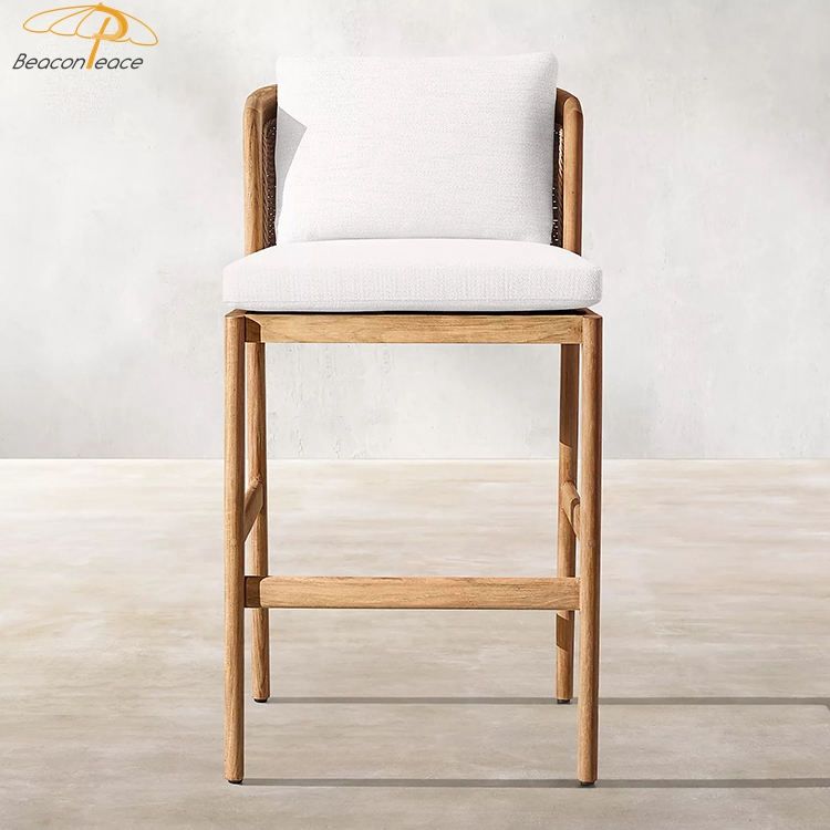 Bistro all'aperto patluxury lounge chair rattant in legno di teak bar giardino per il tempo libero sedie alte con cuscino