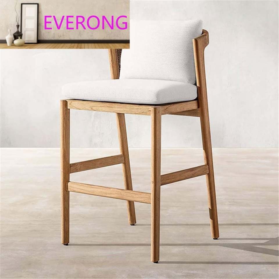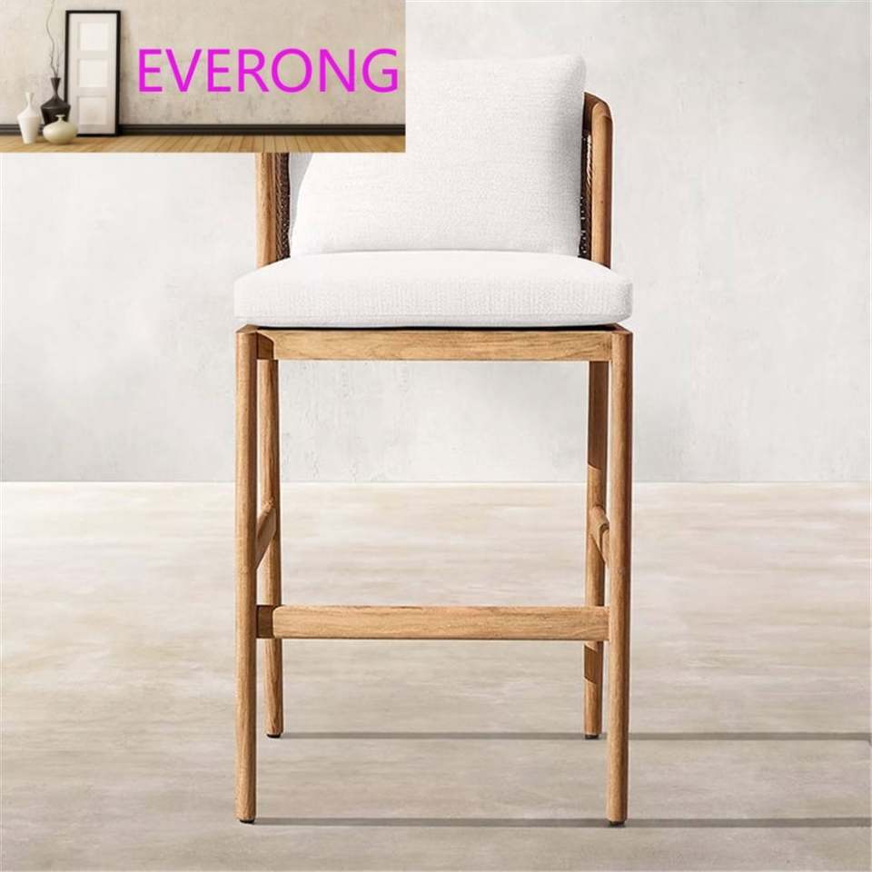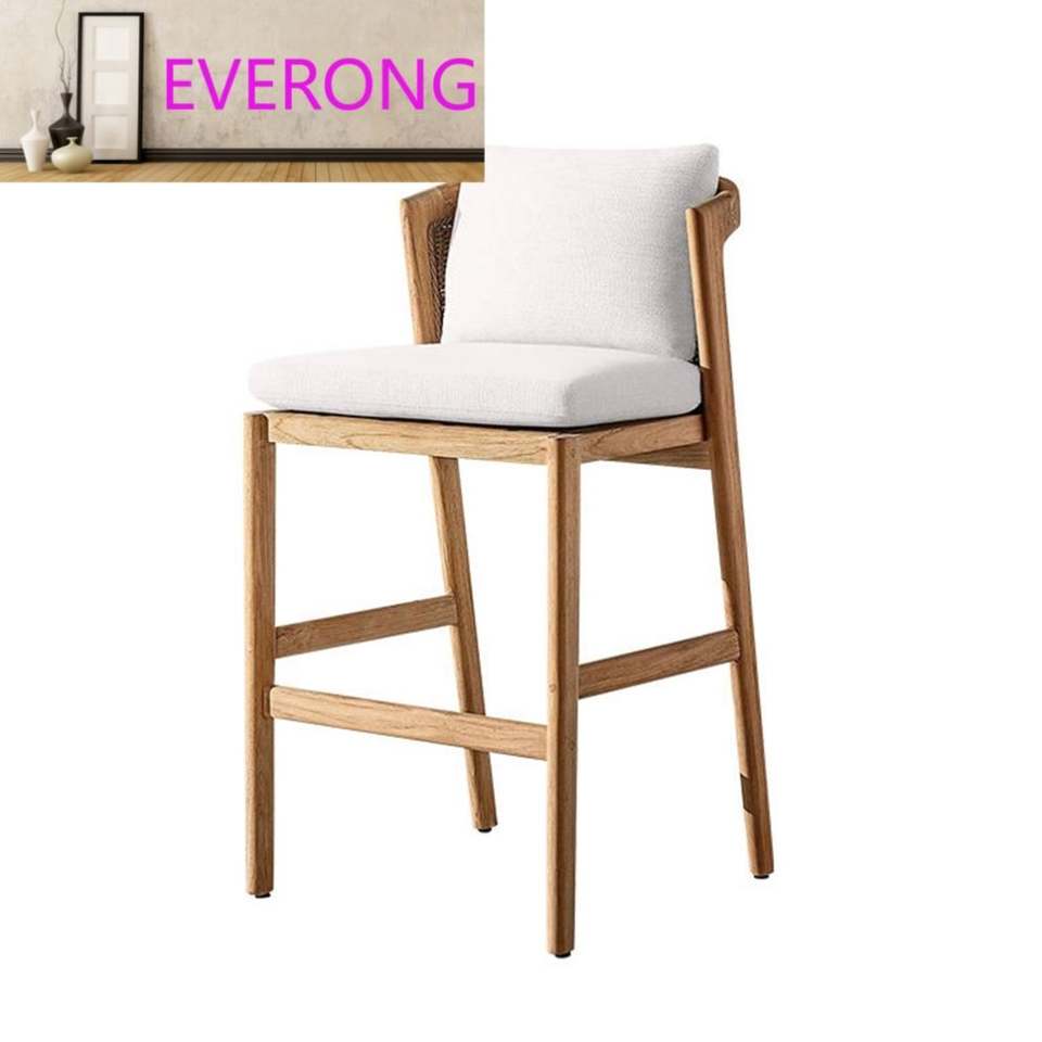 Sedia da Bistrot da Esterno Patluxury in Rattan e Legno di Teak, Sedia Alta da Giardino per Bar e Tempo Libero con Cuscino