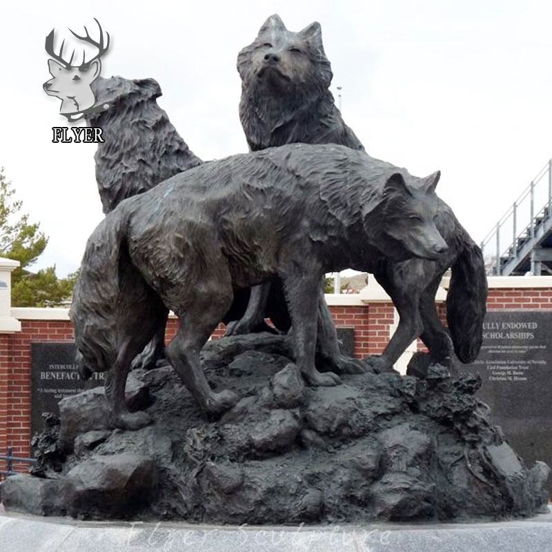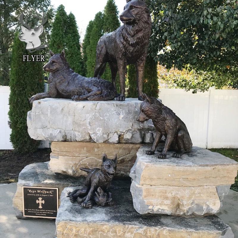 Scultura in bronzo di animali da esterno, antica scultura romana a grandezza naturale di lupo e cuccioli in bronzo