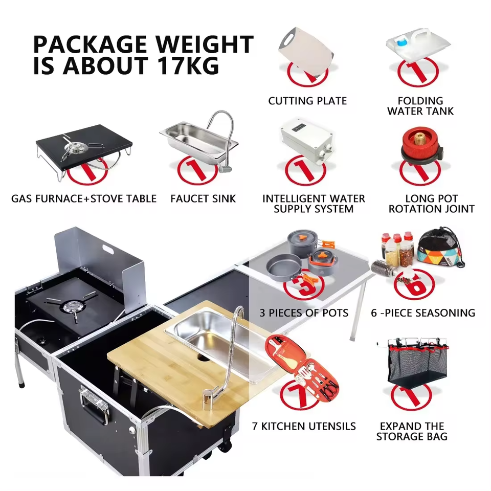 Outdoor Camping Cooking Set Camping Mobile Kitchen Box Cook Table Stove Portable Car Folding Kitchen for Outdoor Camping Hiking