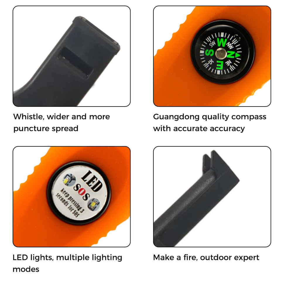 Fischietto multicolore da campeggio all'aperto per aiutare accendino a pietra focaia, Fire starter survival LED compass bastone da fuoco multifunzionale