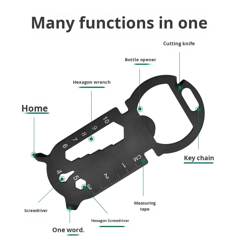 Attrezzo Multifunzione da Esterno con Apribottiglie e Portachiavi, Logo OEM, in Acciaio Inossidabile, Regalo Portatile per Ingegneri