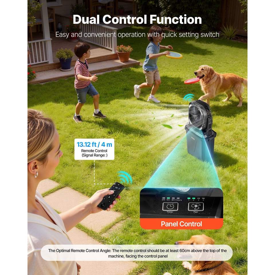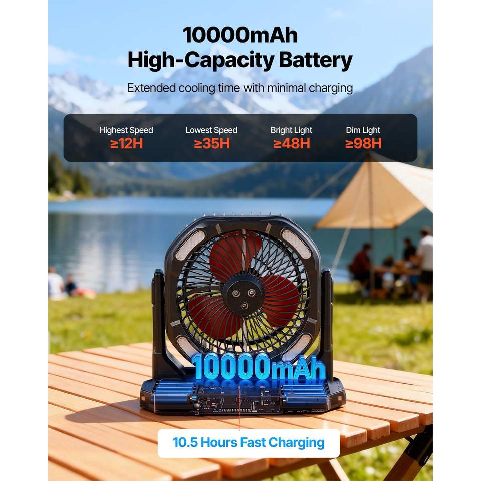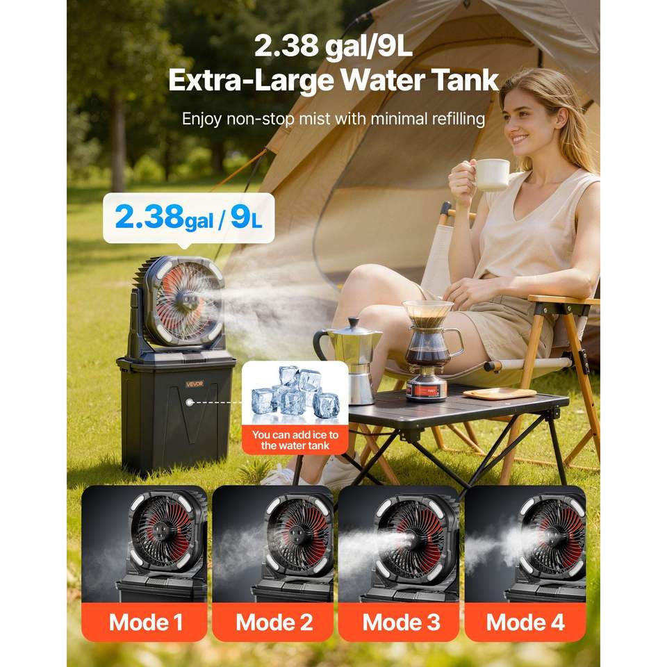 Ventilatore Nebulizzatore da Esterno con Motore da 2700 RPM, Serbatoio Acqua da 8,9 Litri, Batteria da 10000 mAh, 4 Velocità del Vento, 4 Opzioni di Velocità del Ventilatore