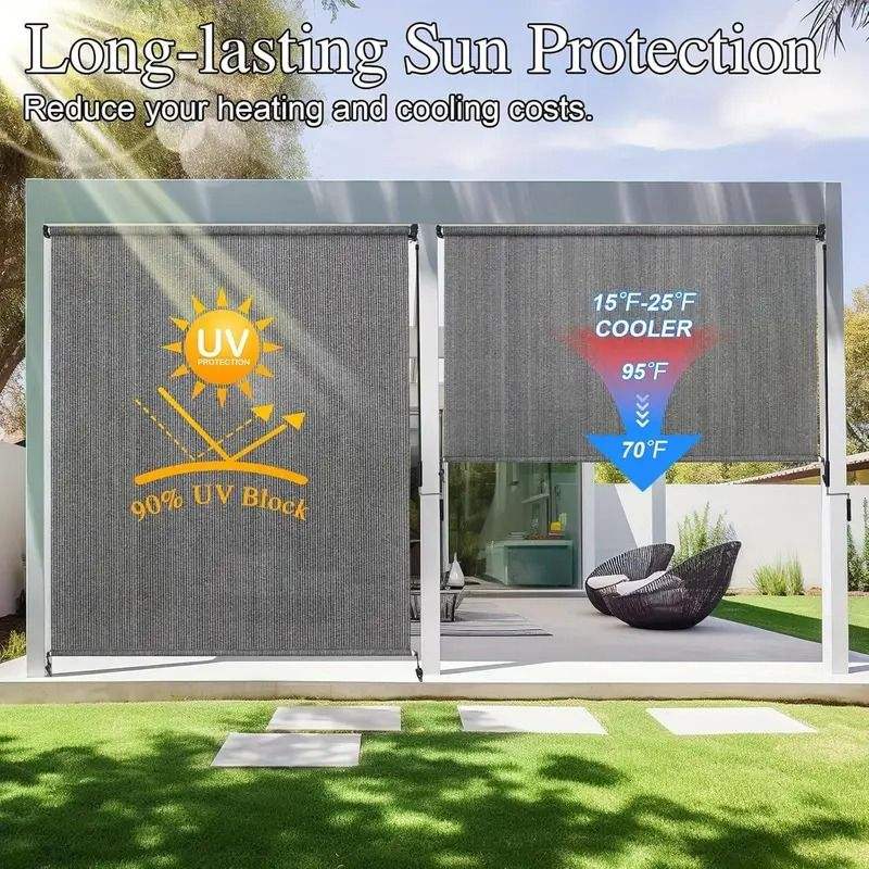 Tenda Parasole Avvolgibile Senza Fili per Esterni con Protezione UV, Design per Patio, Gazebo, Portico, Balcone e Terrazza