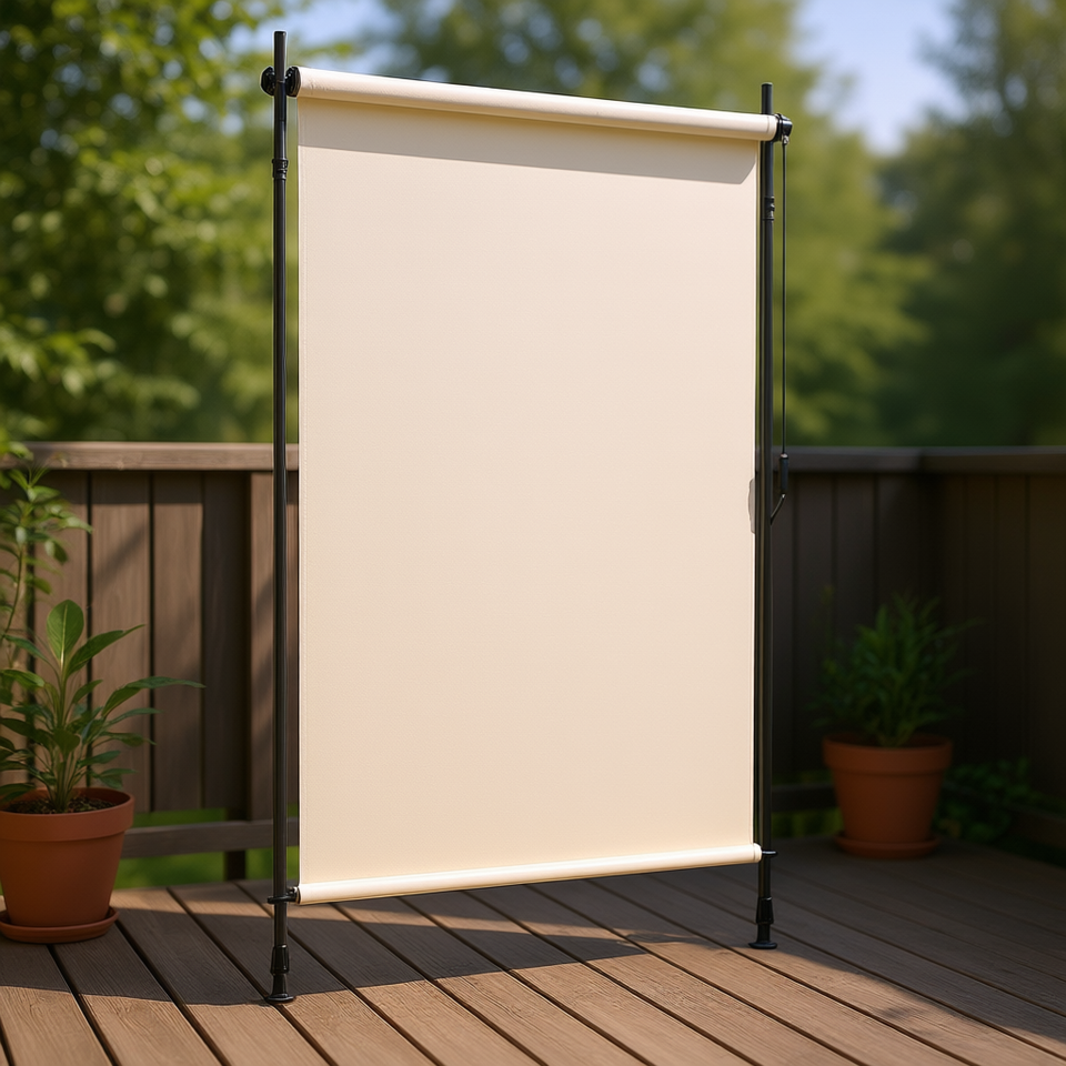 Tenda a Rullo da Esterno Color Crema 47.2x106.3 Pollici, Filtrante Luce e Blocca UV, per Porte da Patio e Installazione Esterna