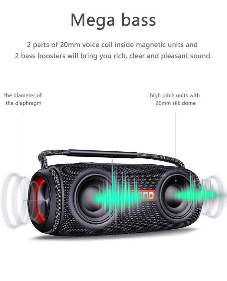Altoparlante Bluetooth Portatile Impermeabile IPX6 da 40W con Logo Personalizzato, Mega Bass e Luci LED RGB per Esterni