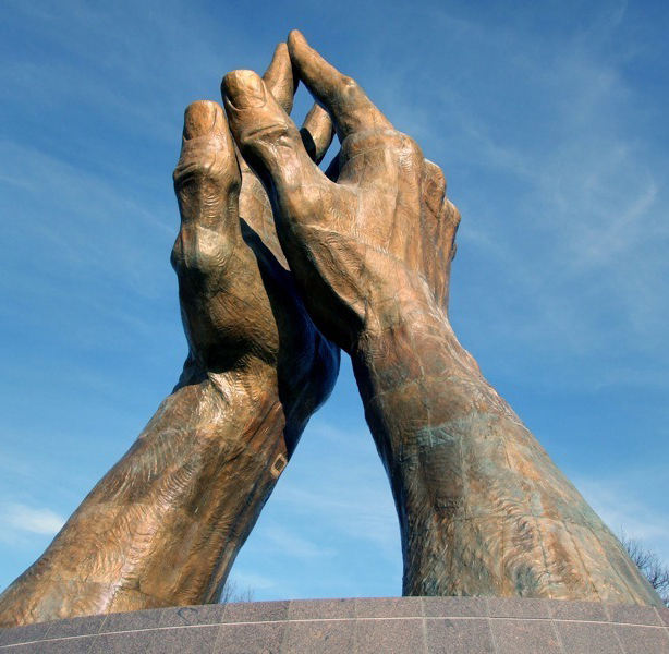 Decorazione esterna enorme bronzo statua di mano grande astratto fusione bronzo mani preghiera scultura