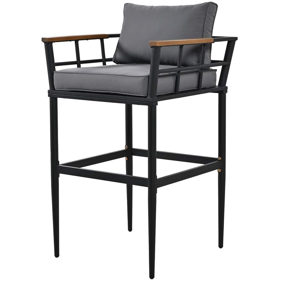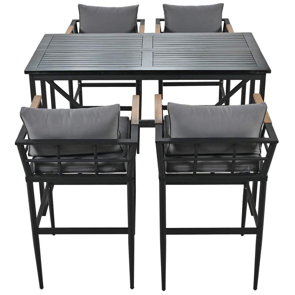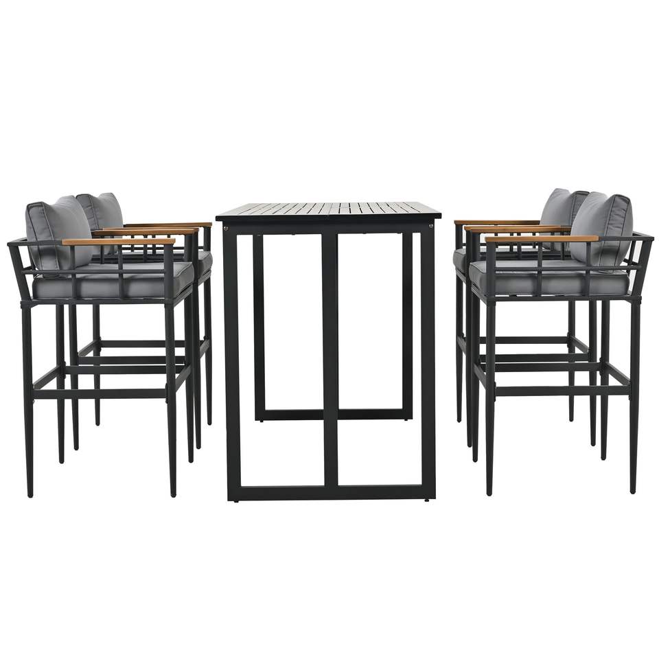 Set da Pranzo per Esterni con Braccioli in Acciaio e Legno di Acacia per Patio, Balcone o Giardino