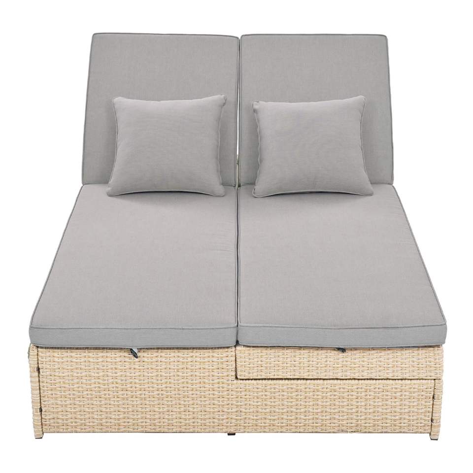 Lettino Prendisole Doppio da Esterno in Rattan Intrecciato con Schienale Regolabile, Set Conversazione per 2 Persone, Sedie a Sdraio