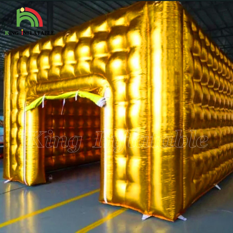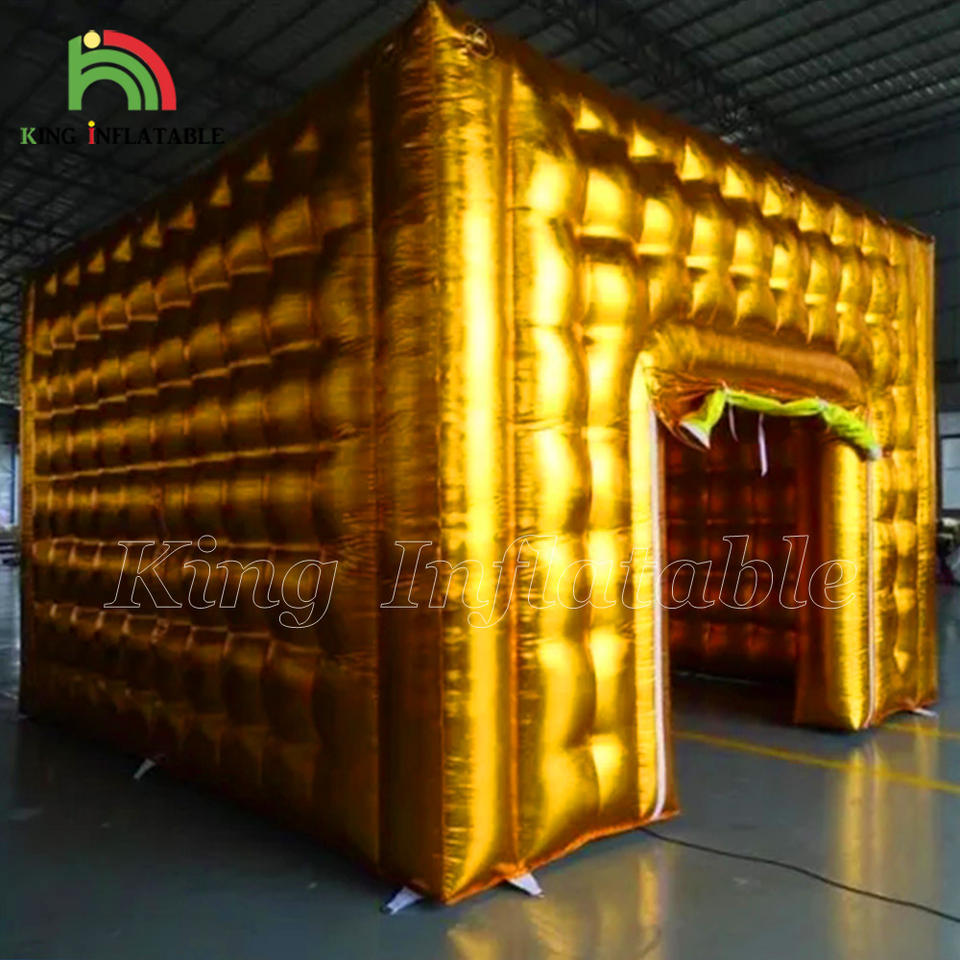 La cabina fotografica dell'interno della tenda cubica gonfiabile del partito di evento all'aperto fa esplodere le tende del cubo dell'oro