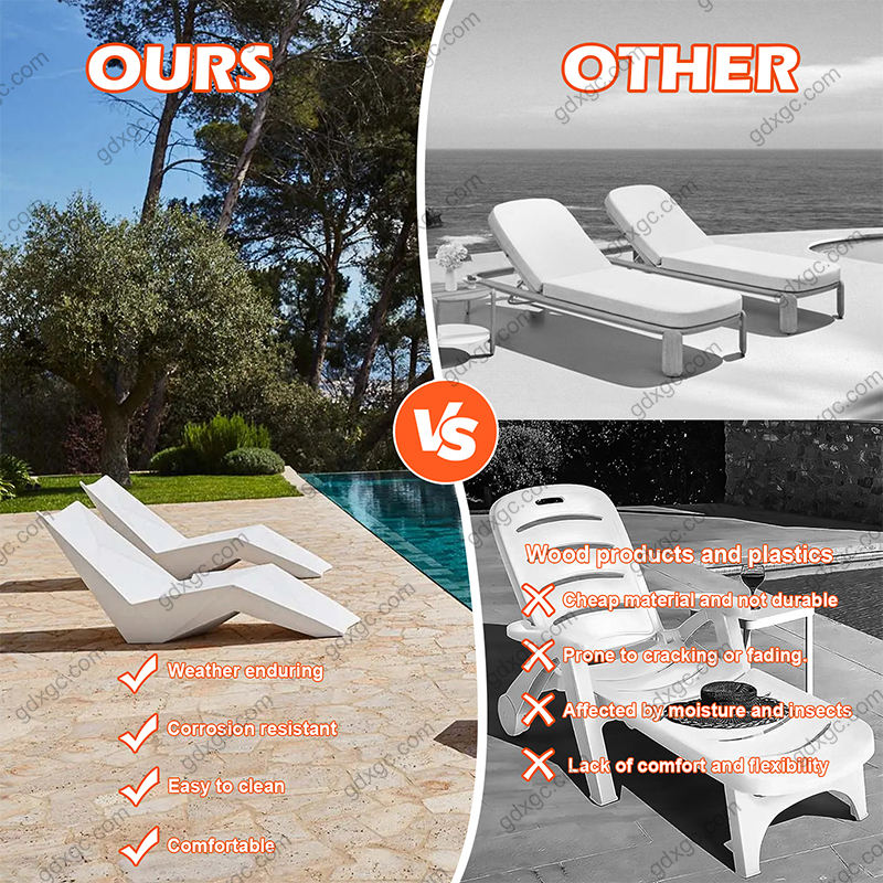 Outdoor Fiberglass Double Sun Lounger Chaise Lounger Swimming Pool in Water Diving Deck Chair