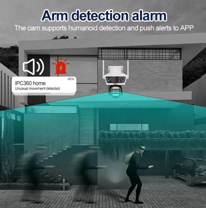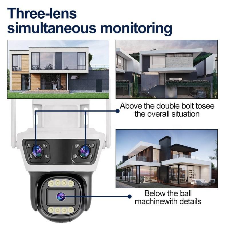 Proiettore esterno Cctv telecamera IPC 360 con sistema di sicurezza di rilevamento del movimento di visione notturna della rete 3 obiettivo della macchina fotografica