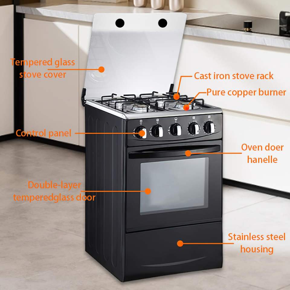 Cucina Esterna Indipendente con Forno Quadrato a 4 Fuochi a Gas, Caldaia Elettrica e Fornello con Vetro Collegato Verticalmente per Uso Domestico